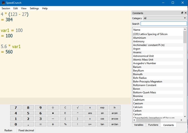 برنامج الآلة الحاسبة SpeedCrunch