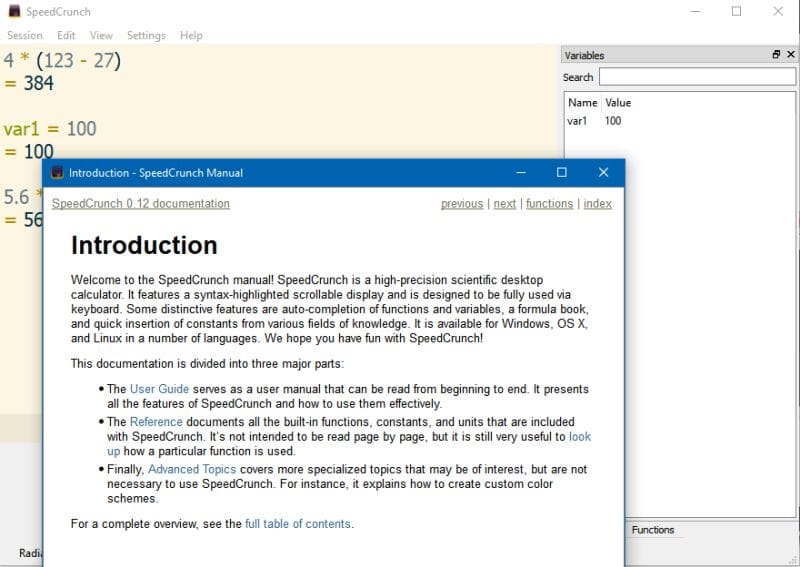 برنامج الآلة الحاسبة SpeedCrunch