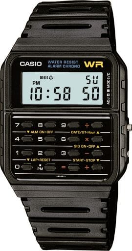 الساعة الثانية التي أتذكر امتلاكها كانت ساعة رقمية من كاسيو وتحوي آلة حاسبة، كانت فكرة مذهلة في ذلك الوقت أن تكون الساعة أي شيء آخر غير كونها ساعة، كاسيو كانت تبدع في صنع ساعات رقمية بخصائص مختلفة، أذكر واحدة كان يملكها طالب في الفصل وكانت تحفظ الأرقام وباستخدامها يمكنه الاتصال بالأرقام المخزنة، عليه فقط أن يضع الساعة على سماعة الهاتف ثم يضغط على زر في الساعة لتصدر أصوات مفاتيح الهاتف، يمكنك مشاهدة ذلك: