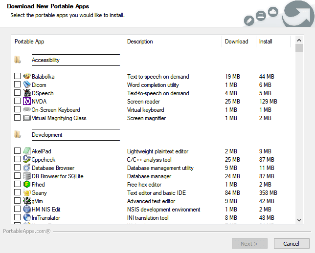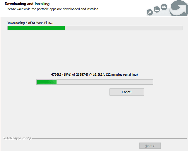 من المفيد أن تعد مفتاح يو أس بي للأزمات، لا تحتاج لفعل الكثير والأمر سهل وبسيط، أولاً يجب أن يكون لديك مفتاح يو أس بي فارغ، ضعه في المنفذ المناسب في جهازك واتجه لموقع Portableapps.com وبالتحديد لصفحة التنزيل، نزل البرنامج وشغله وثبته على مفتاح يو أس بي، البرنامج سيتولى فعل ذلك وكل ما عليك فعله هو النقر على زر التالي (next).