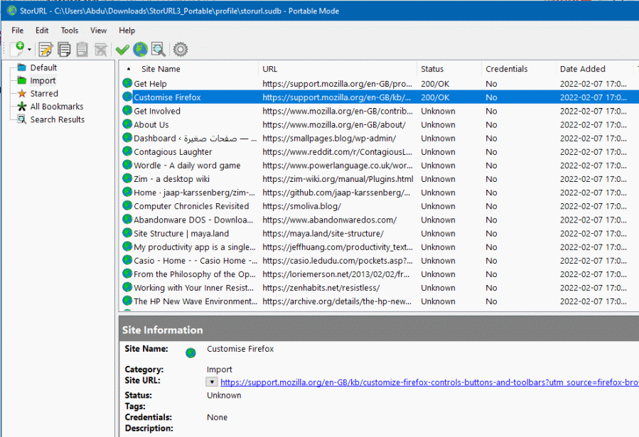 يمكن للبرنامج استيراد ملفات روابط من المتصفحات لكنه لم يوفر استيراد ملف html من فايرفوكس وهذا غريب، لذلك استخدم استيراد الملف من نيتسكيب ونجح في استيراد روابط المتصفح.