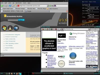 توزيعة Damn Small Linux واحدة من أصغر التوزيعات تأتي بحجم 50 ميغابايت فقط وقد جربتها مرات عدة وفي كل مرة أشعر بسعادة لا أستطيع وصفها! هناك شيء جميل في استخدام البسيط والصغير لتحقيق الكثير، في الصورة هناك متصفح فايرفوكس ومتصفح Dillo الذي يهدف لأن يكون متصفحاً صغير الحجم، استخدمته مرات عدة معجب ببساطته لكنه لن يعمل على مواقع كثيرة اليوم.