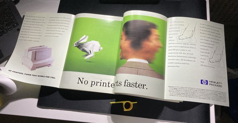• في منتصف المجلة إعلان يمتد لأربع صفحات، كيف أصور هذا؟! فعلت ما بوسعي، الإعلان جميل ولا شيء رقمي يستطيع أن يحاكي ما يمكن فعله بالورق.
